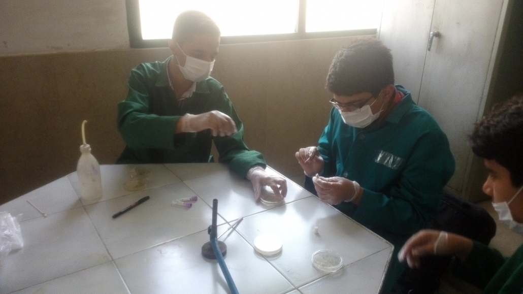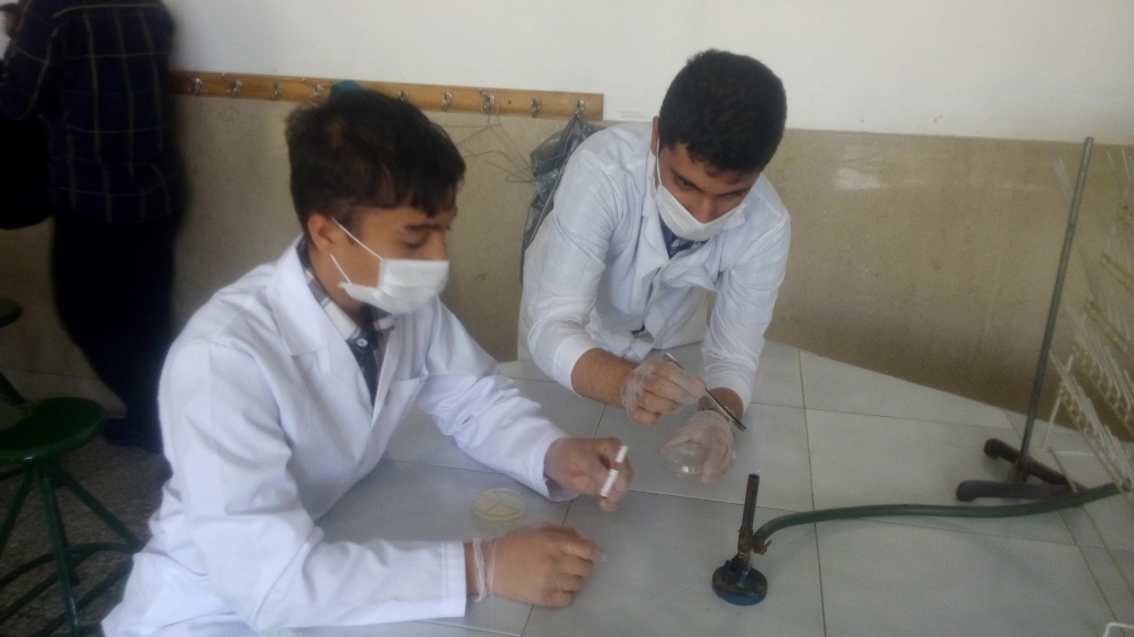 در تصاویر فوق فعالیت های مربوط به رنگ آمیزی باکتری ها توسط دانش آموزان، کشت باکتری (کشت خطی و کشت چمنی) و همچنین تحقیق بر روی عصاره های گیاهی در درمان (طب سنتی) را مشاهده می نمایید.