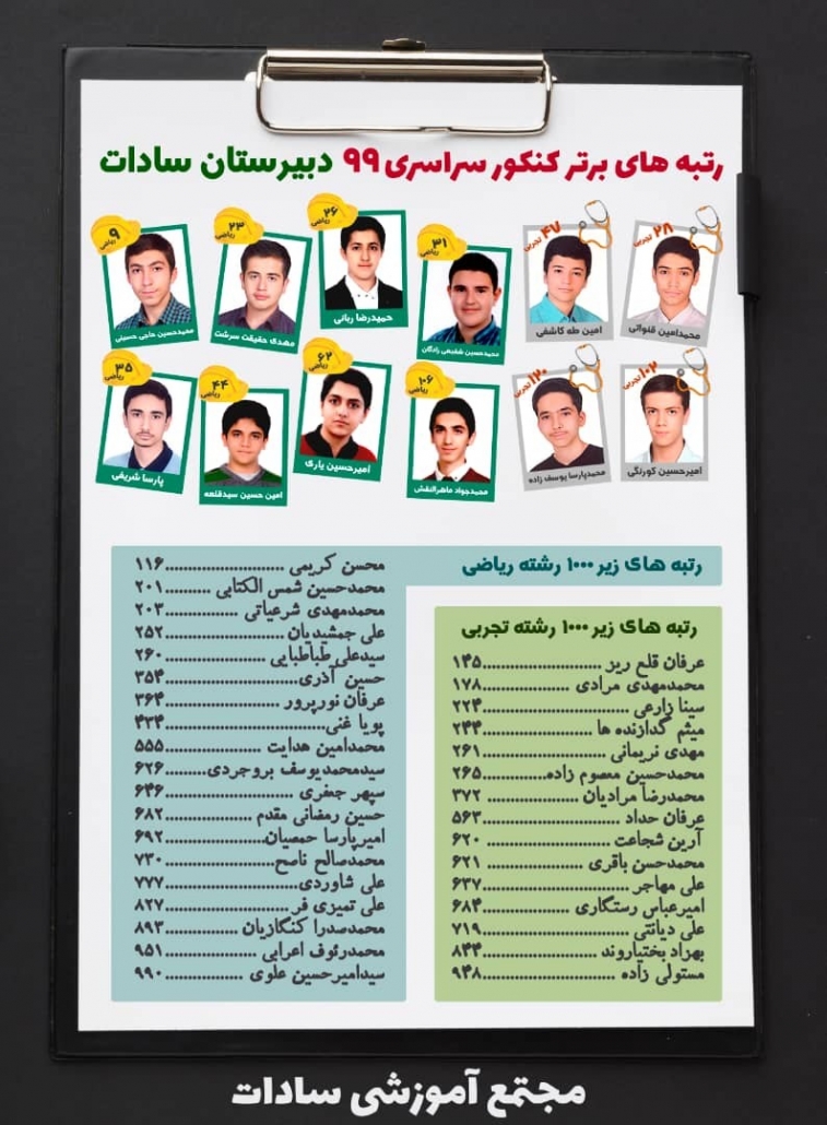 اسامی نفرات برتر کنکور سراسری ۱۳۹۹ مجتمع آموزشی سادات