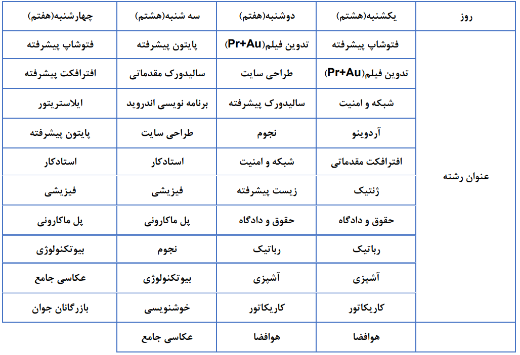 طرح پویش دبیرستان سادات در این ترم با رشته های زیر آغاز شد:
