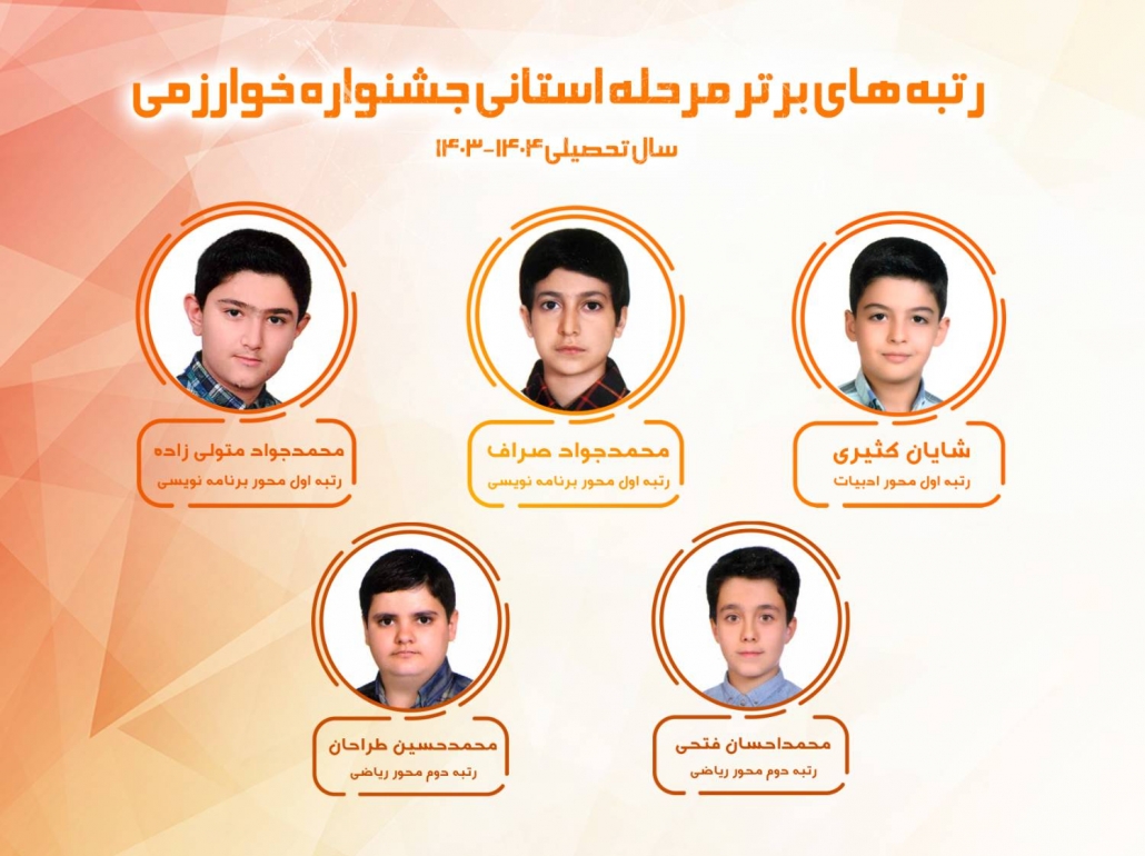 مهر ۱۴۰۴ – بالاخره نتایج مرحله استانی جشنواره نوجوان خوارزمی سال گذشته! توسط اداره آموزش و پرورش اعلام شد که نام پنج تن از دانش آموزان دبیرستان سادات در میان آنها می درخشد.